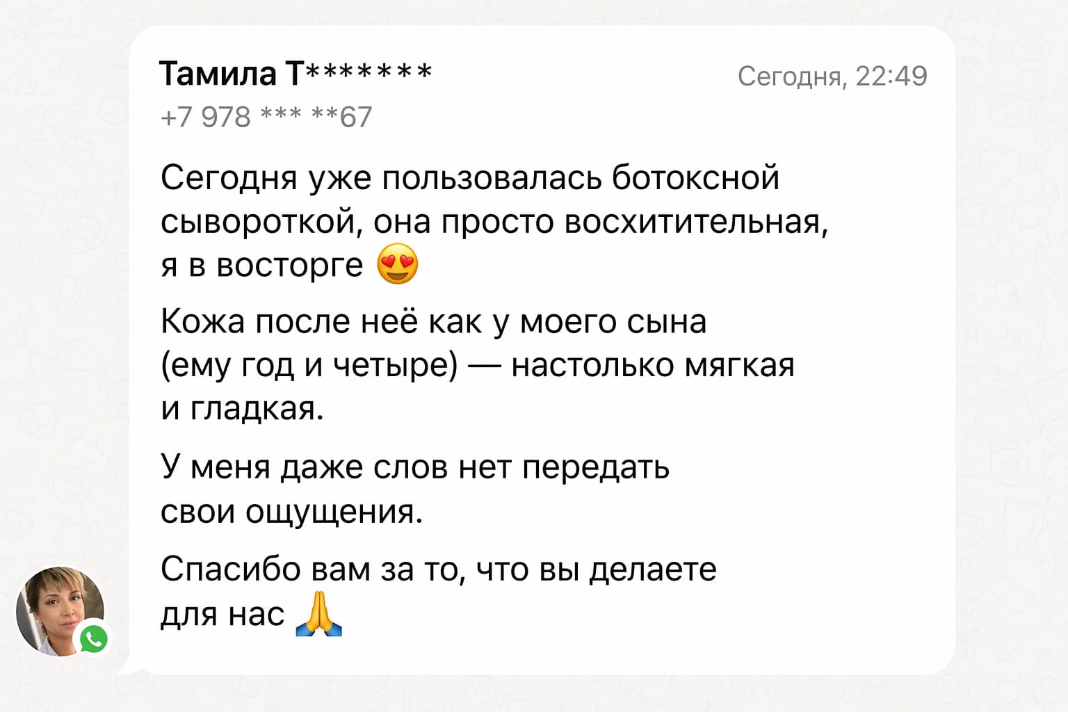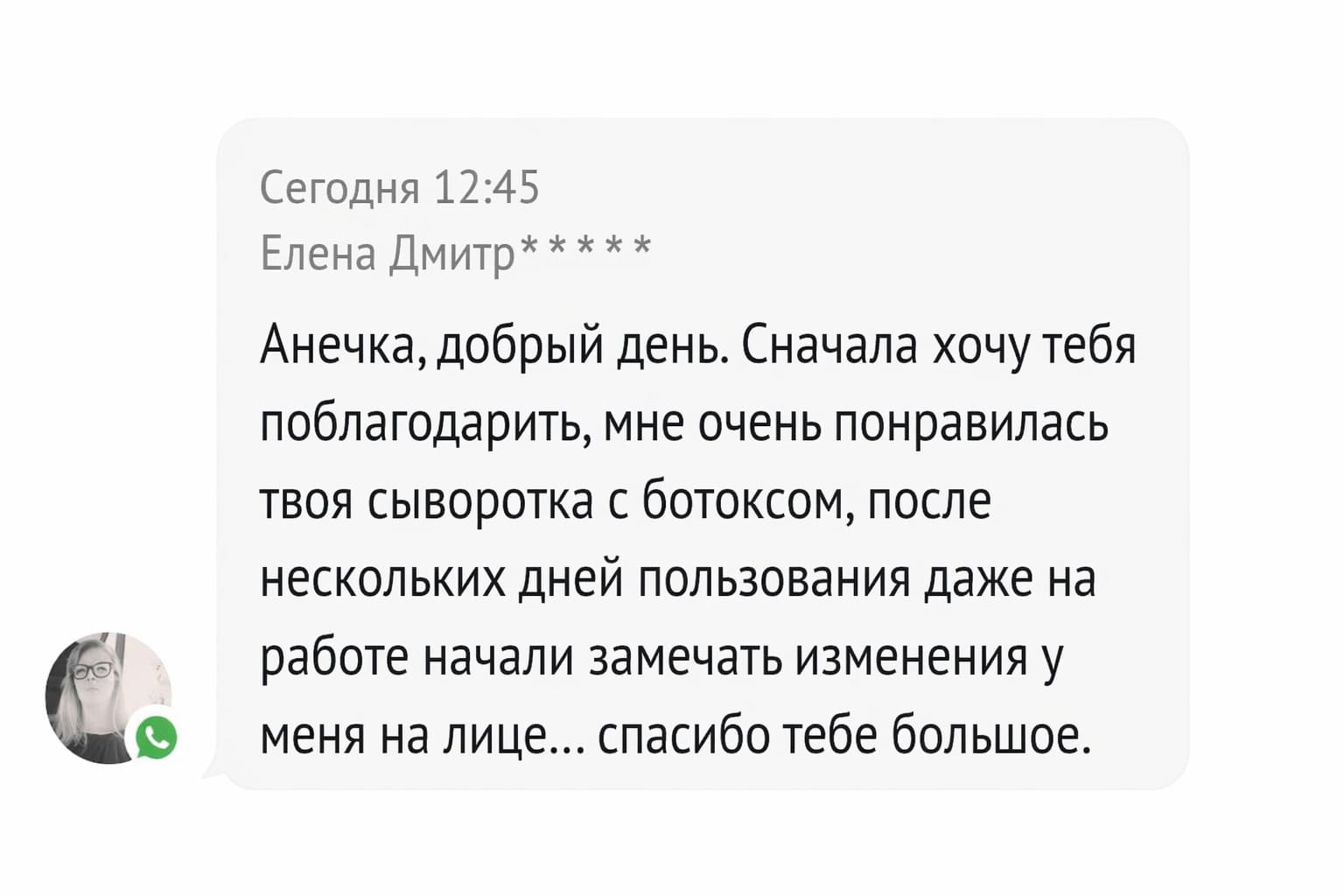 Я очень довольна ботоксной сывороткой, прямо видно как работает, спасибо!