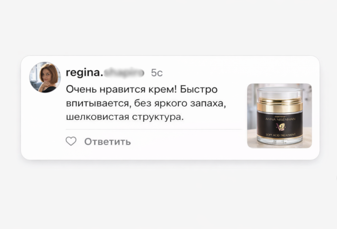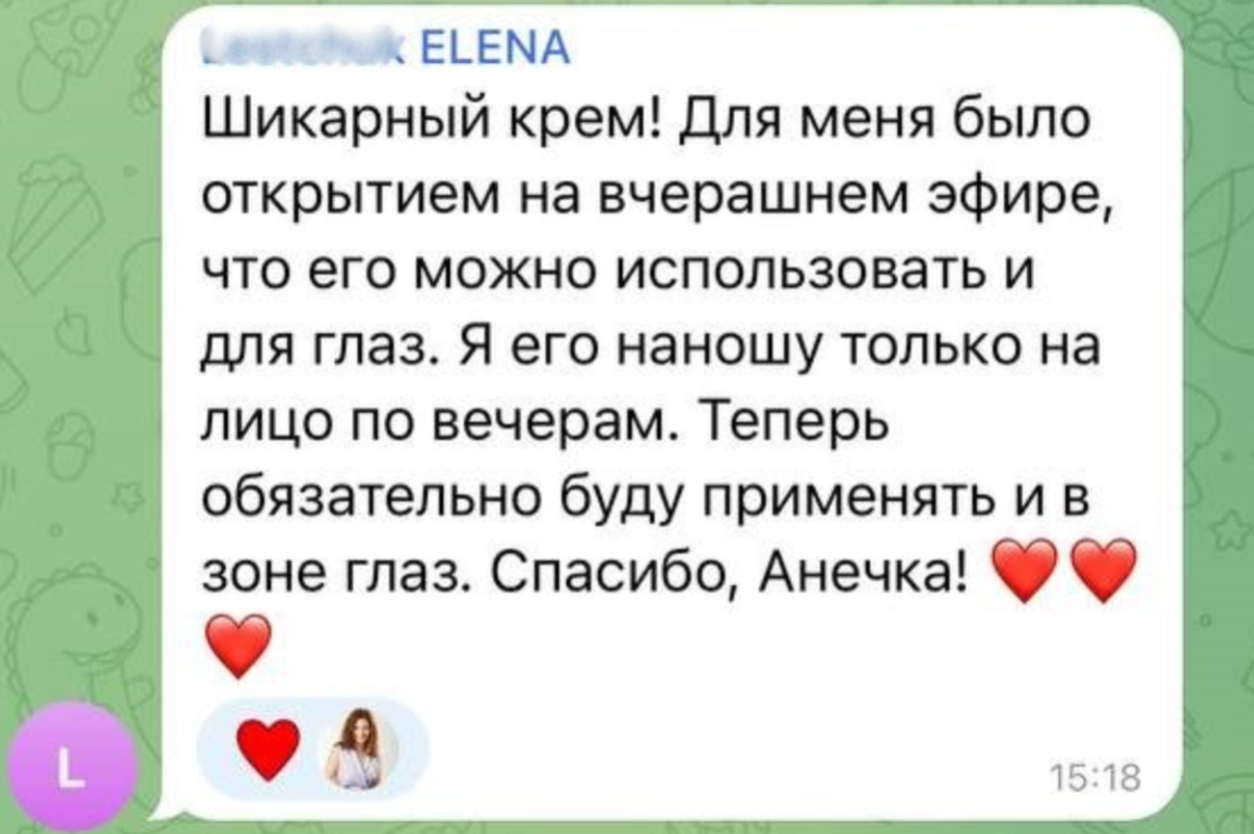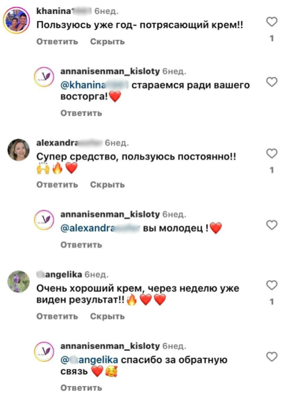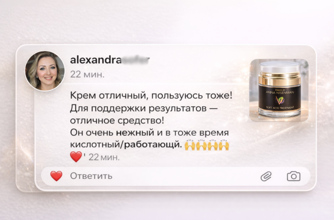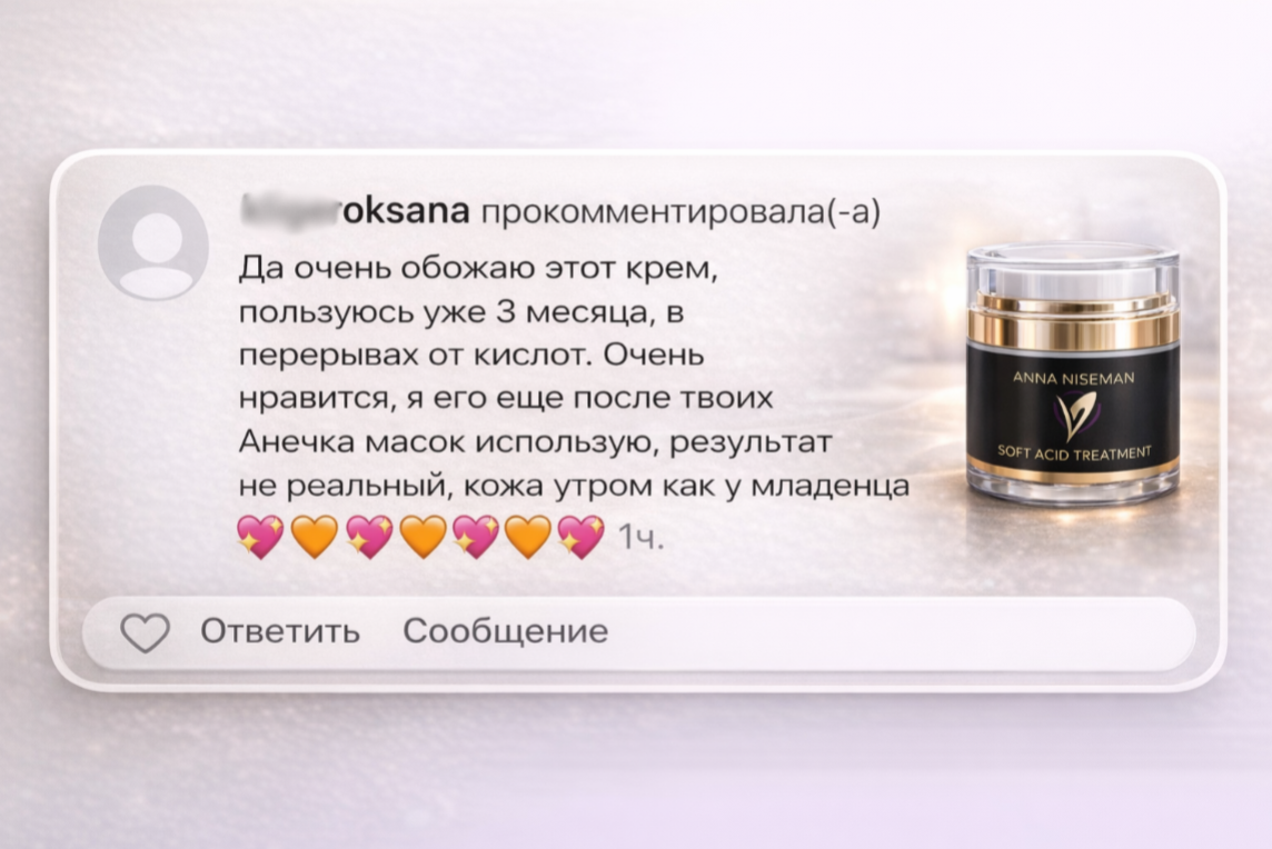 Да очень обожаю этот крем, пользуюсь уже 3 месяца, в перерывах от кислот. Очень нравится, я его еще после твоих Анечка масок использую, результат не реальный, кожа утром как у младенца Спасибо наша родная ❤️❤️❤️❤️❤️