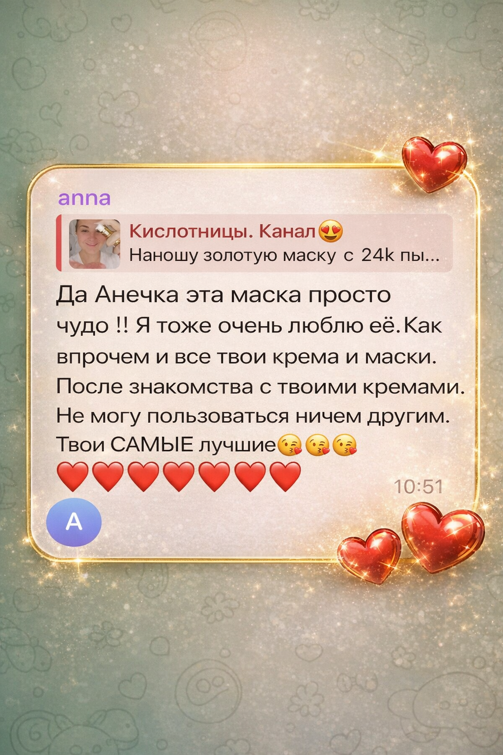 Да Анечка эта маска просто чудо!! Я тоже очень люблю её.Как впрочем и все твои крема и маски. После знакомства с твоими кремами .Не могу пользоваться ничем другим .Твои самые лучшие 😊😊😊🔥🔥🔥🔥