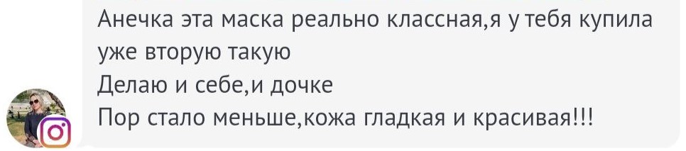Анечка эта маска реально классная, я у тебя купила уже вторую такую. Делаю и себе, и дочке. Пор стало меньше, кожа гладкая и красивая!!!