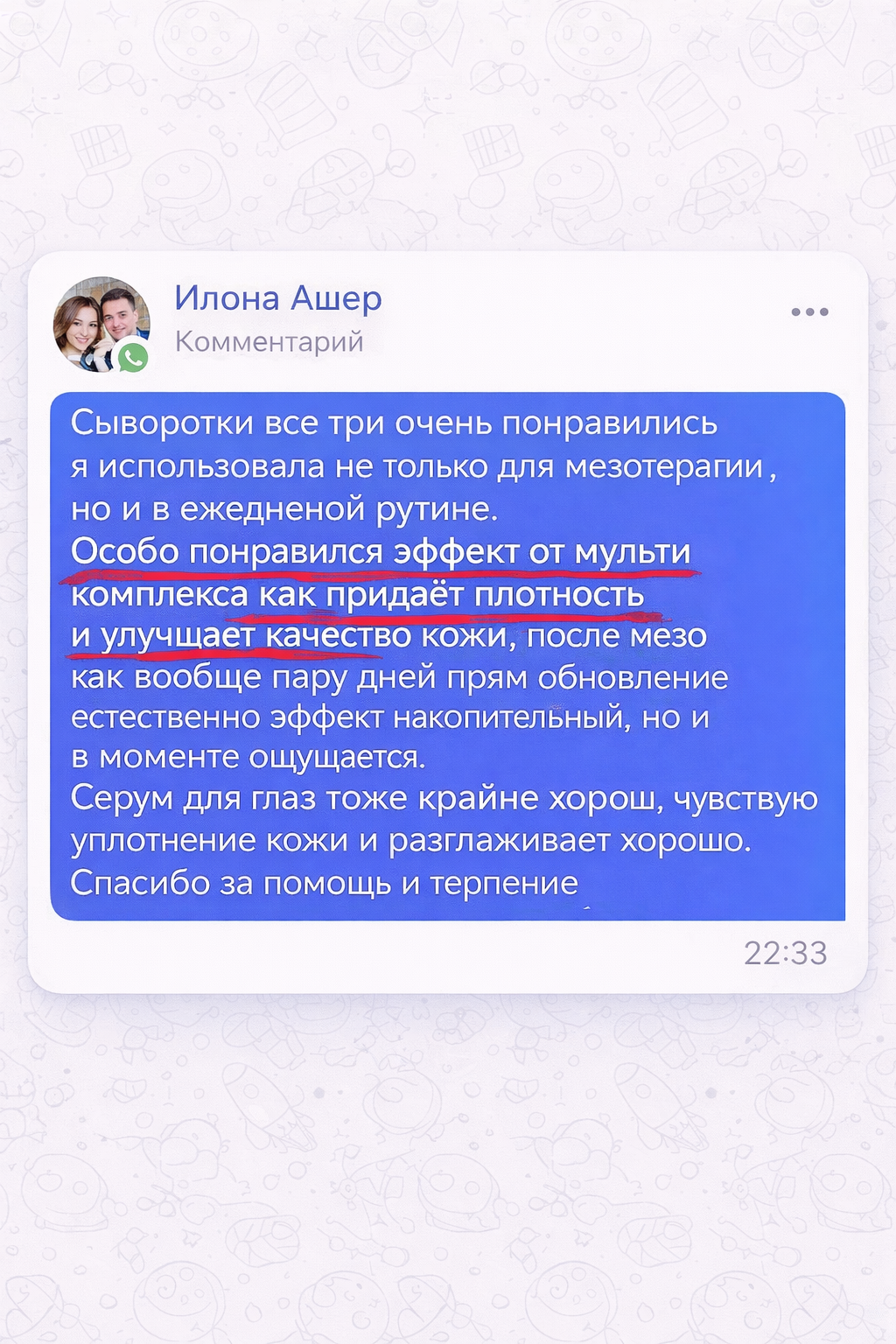 Multi complex наношу перед ночным кремом, чтобы максимально увлажнить кожу — она после сыворотки прямо бархатная. И ощущается как лёгкий лифтинг. Очень приятно пахнет.