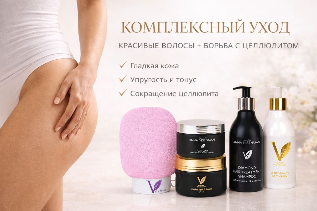 Box: Hair Love Mask 250ml + Hair Shampoo 300ml + Body Cream 300 ml + FitSculptural Cream 250 ml + 🎁 Royal Scrubber Glove